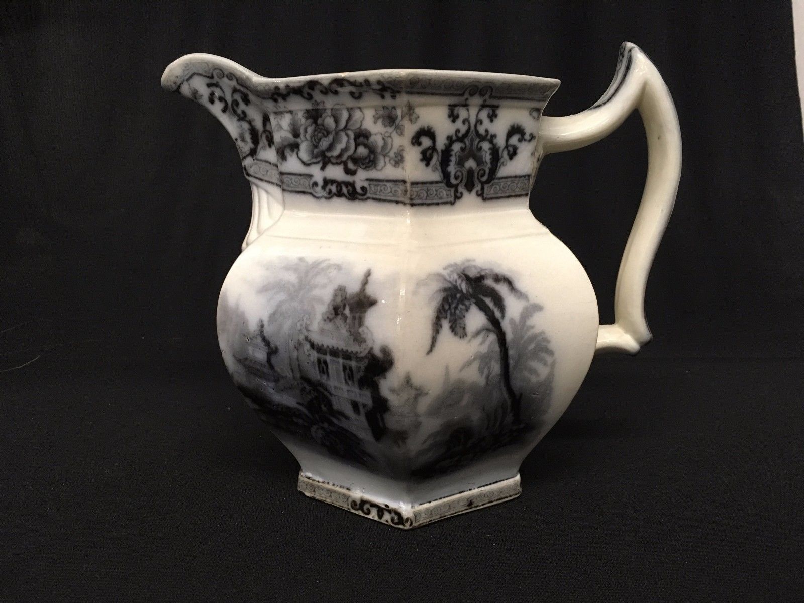 Davenport Large Pitcher Flow Mulberry Ironstone Antique 1800's
