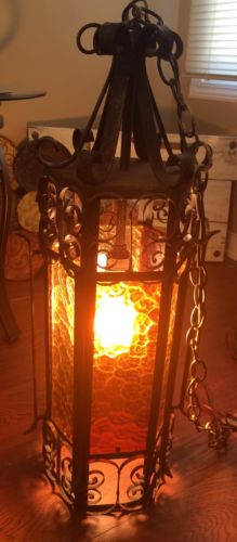 UL Vintage Swag Hanging Spanish Style Gothic Wrought Iron Lamp