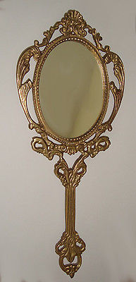 Antique Art Nouveau HAND VANITY MIRROR Solid Brass Vintage