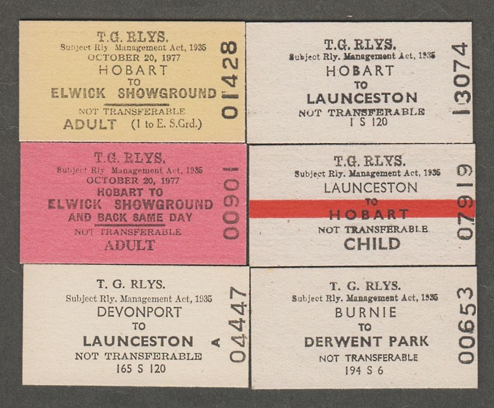 k1266) TRAIN TICKETS x 6 - FROM THE TASMANIA RAILWAYS - 1970's and 1980's