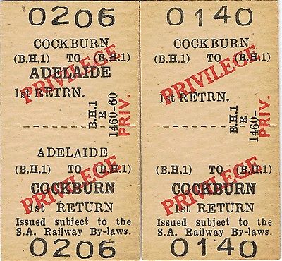 Railway tickets some trips from Cockburn for first class by the old STC and SAR