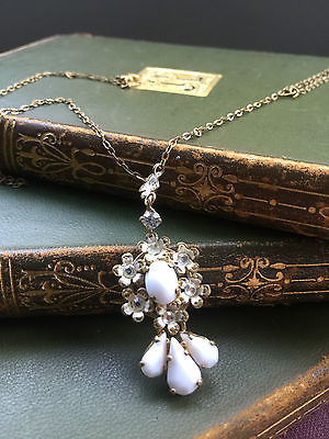 French Antique 1900's 1920's Flower Necklace Milk Glass Dropper