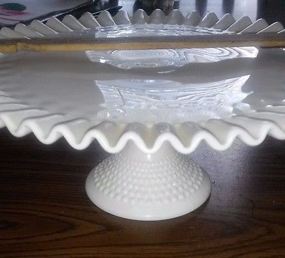 Title (ebay affiliate link): Vintage Fenton White Milk Glass Hobnail Pedestal Footed Cake Plate EXCELLENT!