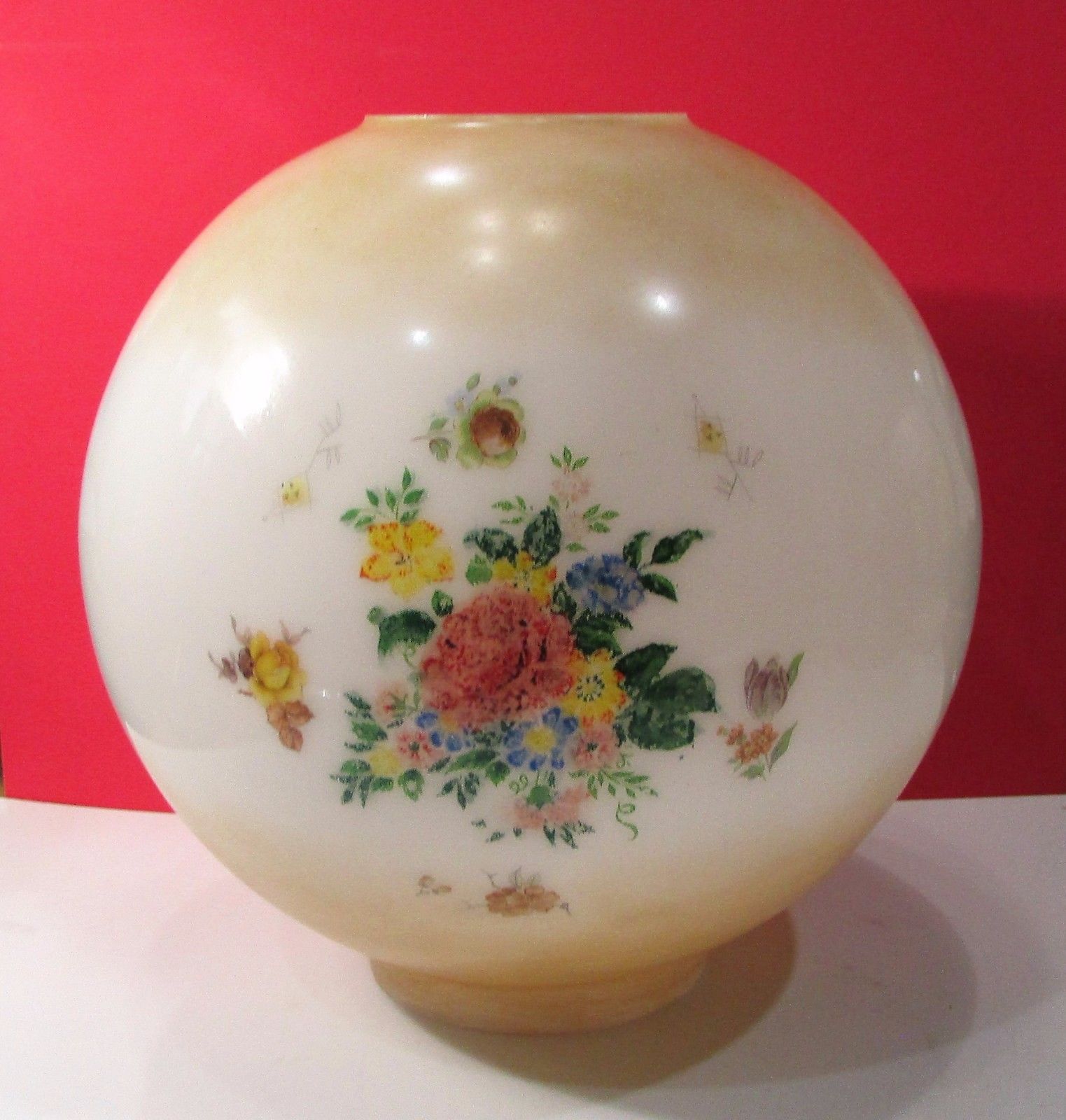 FLORAL MILK GLASS 9 5/8" BALL SHADE GLOBE GWTW OR BANQUET LAMP 4" FITTER