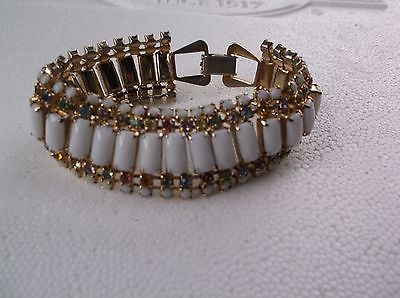 Arm Candy!! Vintage Milk Glass & Pastel Rhinestone Bracelet STUNNING!