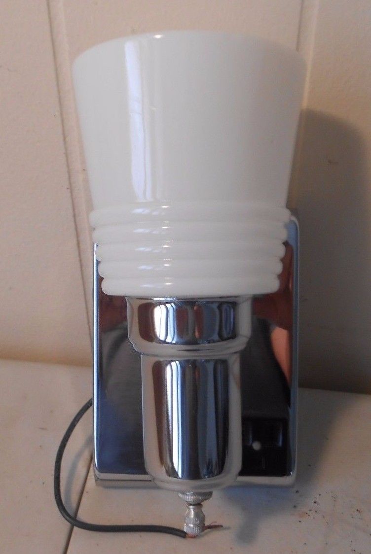 Title (ebay affiliate link): Vintage Art Deco Bathroom Wall Sconce w/Milk Glass Shade and Electrical Outlet