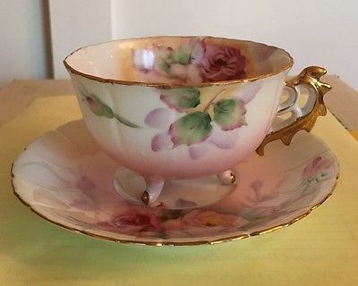 Tokiro Japan Cup and Saucer Three legged -Roses