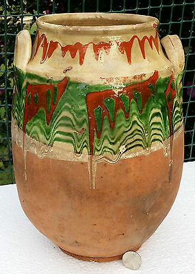 BIG Antique FOLK ART Earthenware POTTERY JAR Slip DECORATED at Shoulder