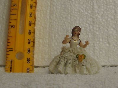 VTG Made In Germany Dresden Porcelain Lady Figurine W/ Lace Dress, #27b, As Is