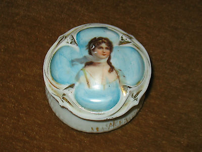 ANTIQUE VICTORIAN LADY PORCELAIN TRINKET BOX