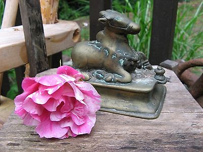 ANTIQUE Central Asian Statue Animal~Bull Fertility? PRIMITIVE~Worn Bronze Unique