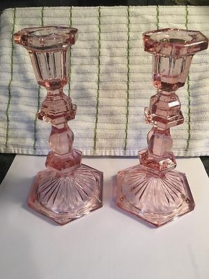 Antique Pink Depression Glass Candlesticks