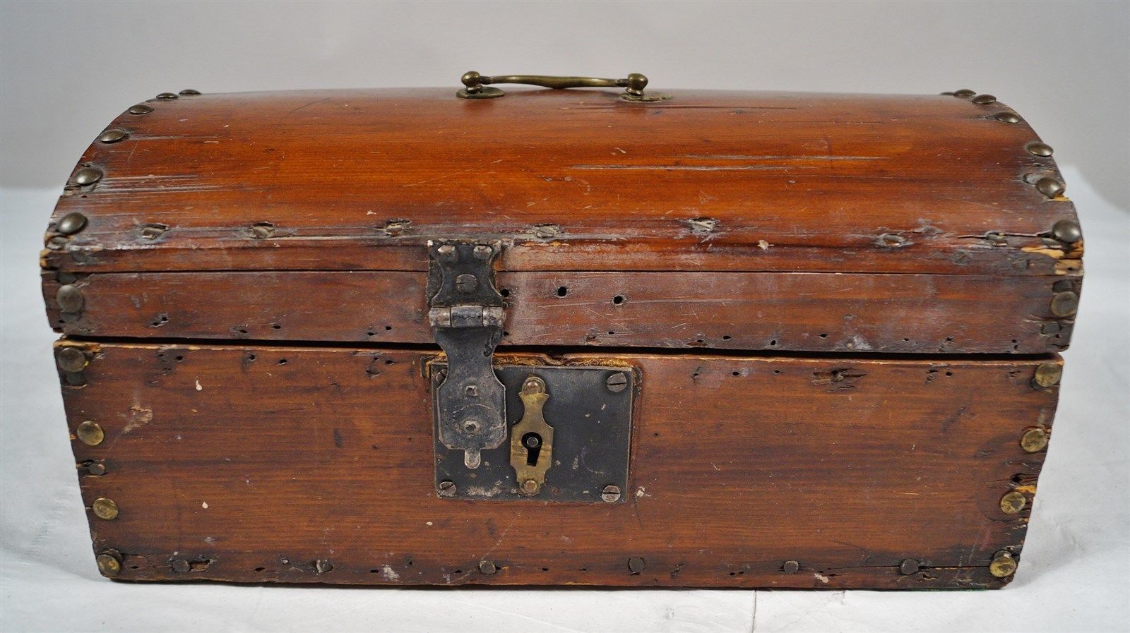 19th Century Wooden Document Chest Box Hand Sewn Paisley Interior