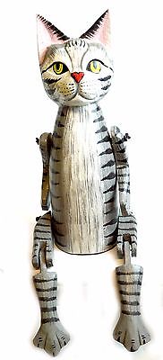 Title (ebay affiliate link): LG Wood Hand Carved Cat Kitten Gray Folk Art Cabin Statue Shelf Sitter Cottage