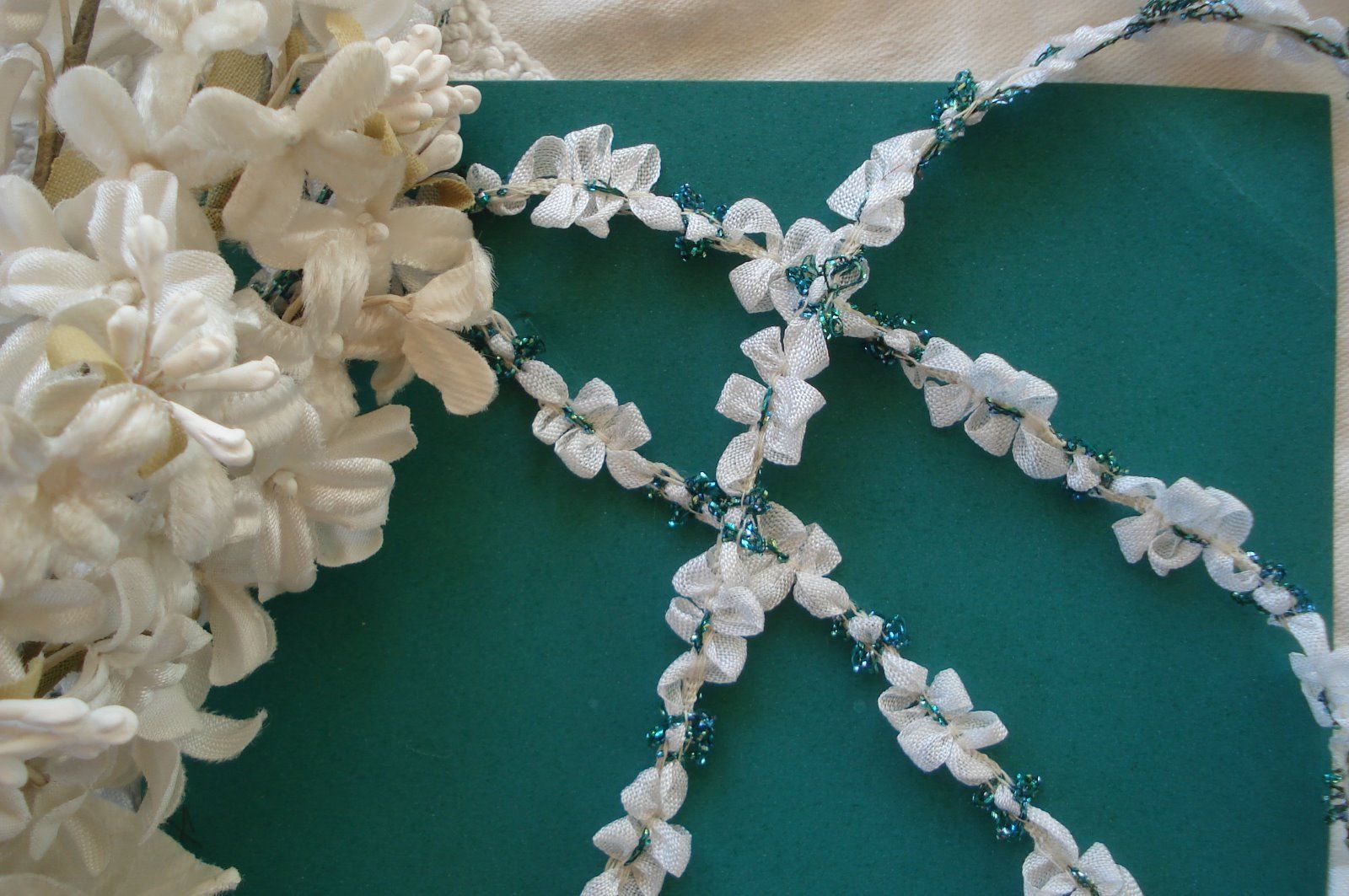 Title (ebay affiliate link): 2y FRENCH TEAL METALLIC SATIN ROCOCO ROSETTE FLOWER RIBBON TRIM VINTAGE DOLL