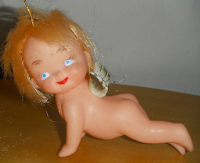 Title (ebay affiliate link): 1960s Antique Small Kewpie Doll Flying Angel Ornament Rooted Hair Wings 5" RARE!