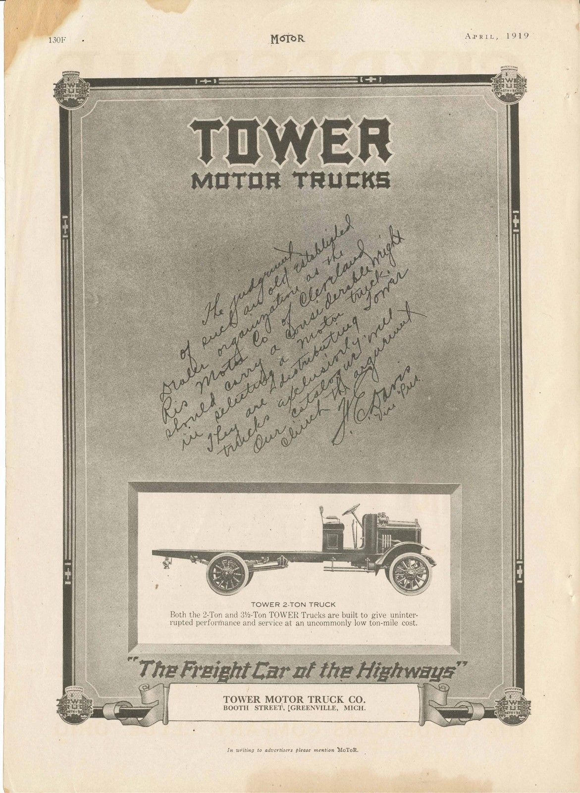Title (ebay affiliate link): 1919 TOWER MOTOR TRUCK FREIGHT ADVERTISEMENT - GREENVILLE MICHIGAN - ORIGINAL