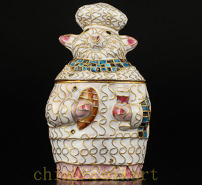CLOISONNE UNIQUE BEAR BREAD COKE BOX ART DECO STATUE COLLECT OLD HANDMADE ORNAME
