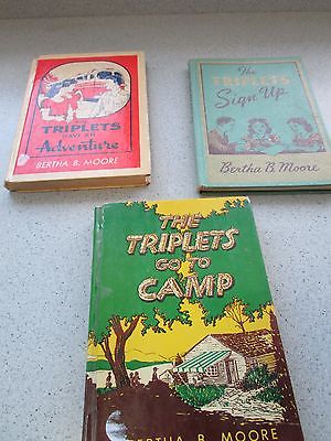 3 THE TRIPLETS BOOKS CAMP ADVENTURE SIGN UP 1943 1952 HARD COVERS COLORFUL