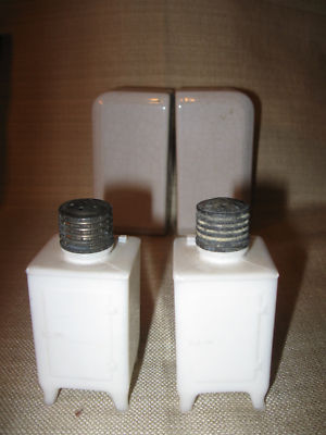 VINTAGE,SALT & PEPPER, FRIDGE, AND OVEN,MILK GLASS