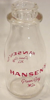 DAIRY MILK BOTTLE Half Pint HANSEN'S Green Bay Wisconsi