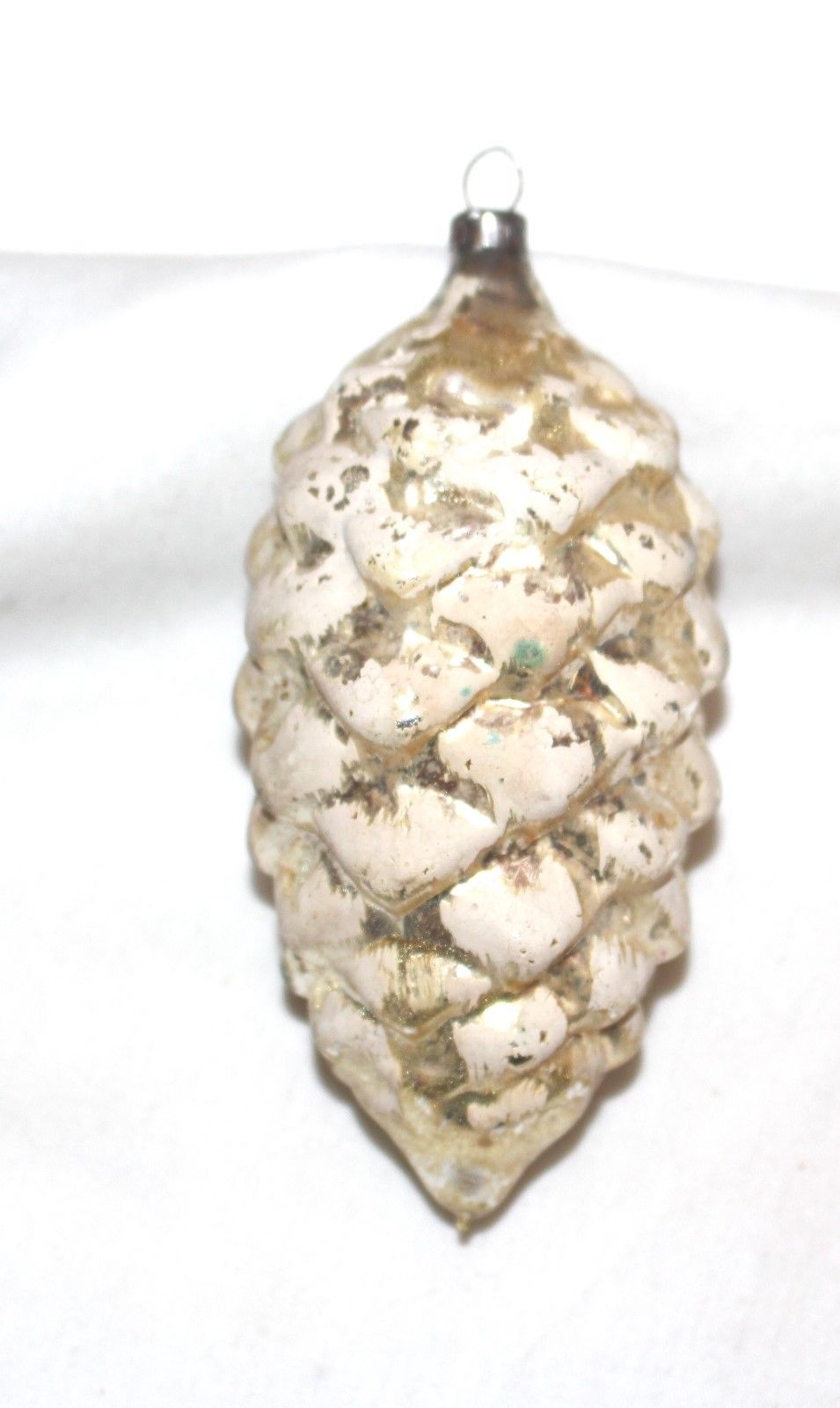 Title (ebay affiliate link): Early 1900s large Gold Snow-tipped Glass Pine Cone German Ornament. So elegant!