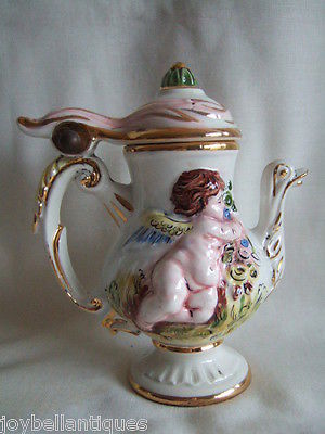 Title (ebay affiliate link): Keramos. R. Capodimonte. Ornamental Decorative Lidded Jug Featuring Cupids.