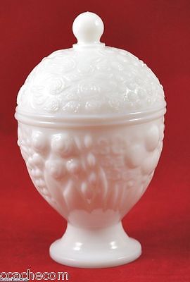 Title (ebay affiliate link): Avon Milk Glass White Covered Pedestal Dish Bowl 1960s Flower Pattern Candy Nuts