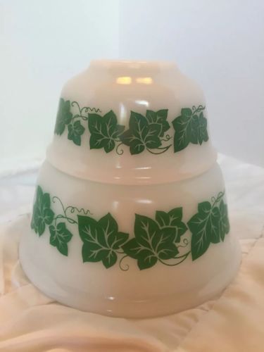 Hazel Atlas Green Ivy Two Milk Glass Bowls