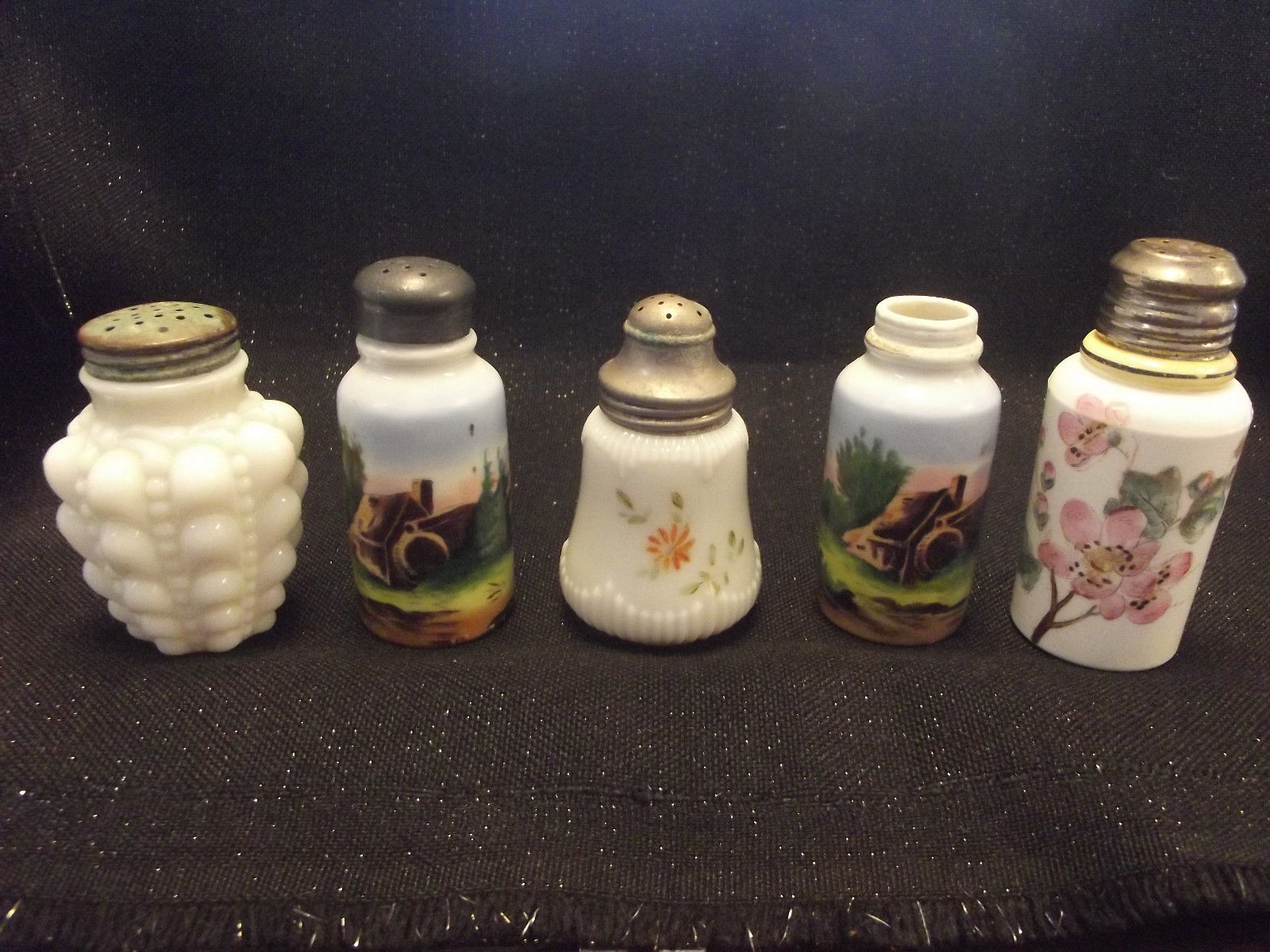 LOT OF 5 VICTORIAN MILK GLASS SALT AND PEPPER SHAKERS