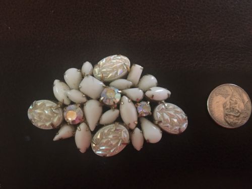 Title (ebay affiliate link): AWESOME VINTAGE "WEISS" SIGNED MILK GLASS AND RHINESTONE PIN/BROOCH
