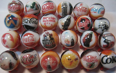 Title (ebay affiliate link): 24 COCA COLA SODA POP GLASS MARBLES 5/8 SIZE COLLECTION LOT + STANDS