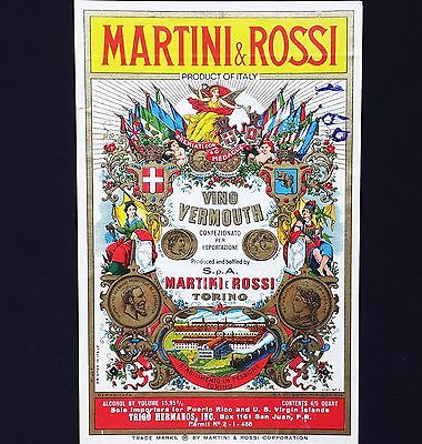 Martini & Rossi Torino Vintage Old Label Etiquette Italy San Juan Puerto Rico PR