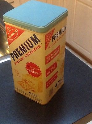 Title (ebay affiliate link): Vintage 1969 Nabisco Premium Saltine Crackers Kitchen Tin Canister Can Box 14 oz