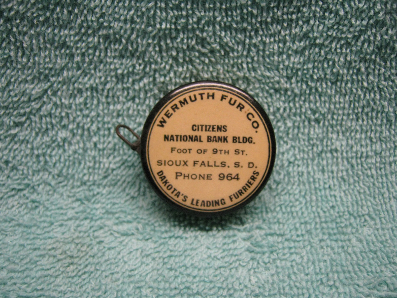 Title (ebay affiliate link): WERMUTH FUR CO SIOUX FALLS SOUTH DAKOTA CELLULOID ADVERTISING TAPE MEASURE