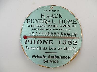 Antique Advertising Thermometer Menomonee Falls WI Haack Funeral Home Vintage