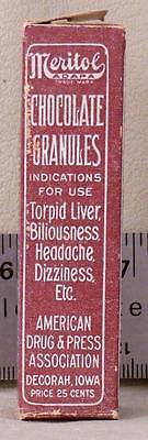 Title (ebay affiliate link): Old Pharmacy Stock Meritol Chocolate Granules for Torpid Liver Patent Medicine