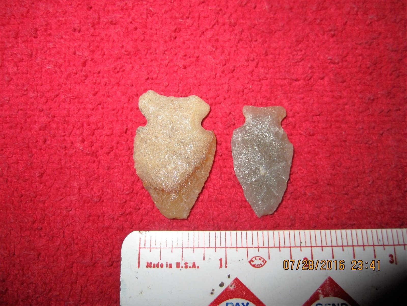 Title (ebay affiliate link): LOT OF 2 NOTCHED HIXTON QUARTZ ARROWHEADS ( MUD LAKE, DODGE COUNTY, WISCONSIN )