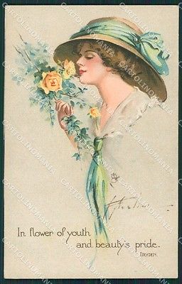 Title (ebay affiliate link): Glamour Fashion Lady with Hat Art Deco postcard cartolina KS4305