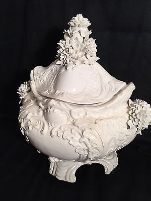 Vintage White Italian Ceramic Tureen with Lid Highly Ornamented ?? Capodimonte