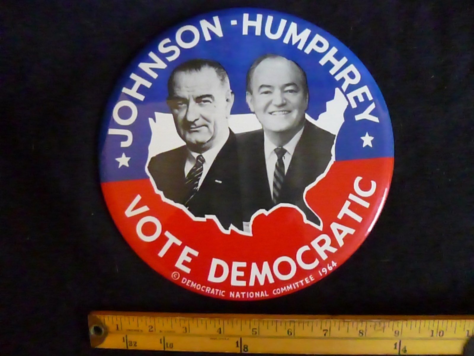 Title (ebay affiliate link): 1964 LBJ Lyndon Johnson Hubert Humphrey 9" Vote Democratic Political Pin Button