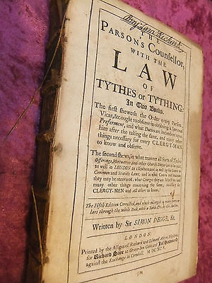 Title (ebay affiliate link): THE PARSON'S COUNFELLOR WITH THE LAW OF TYTHES OR TYTHING. SIMON DEGGE. 1695.