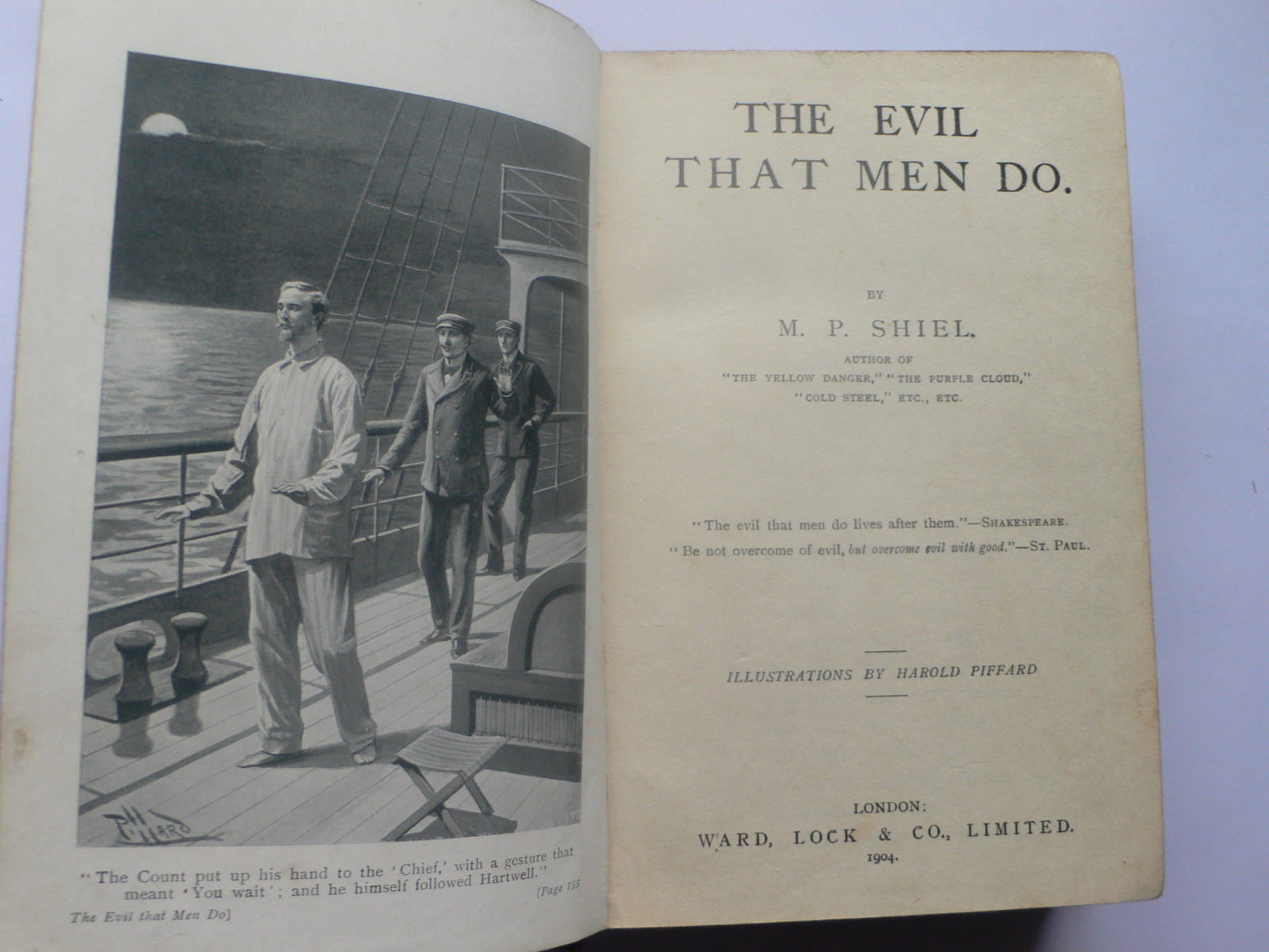 Title (ebay affiliate link): M.P.Shiel.The Evil that Men Do.1904 Hardcover 1st.Ward Lock.Scarce.