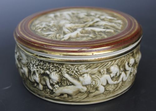 Capodimonte Italy Neoclassical Lovers Scene Cherubs Lidded Trinket Porcelain Box