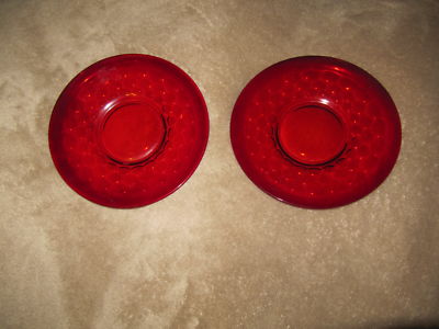 DEPRESSION GLASS ROYAL RUBY SAUCERS DIAMOND QUILTED 2pc