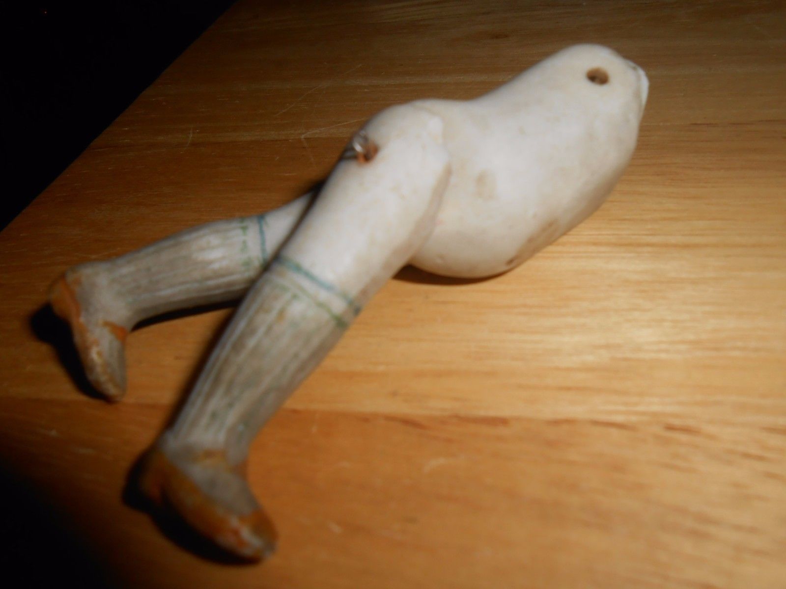 Title (ebay affiliate link): Antique Bisque Doll Body for Parts- Cute Gold Shoes & High Socks-3-1/4" Tall