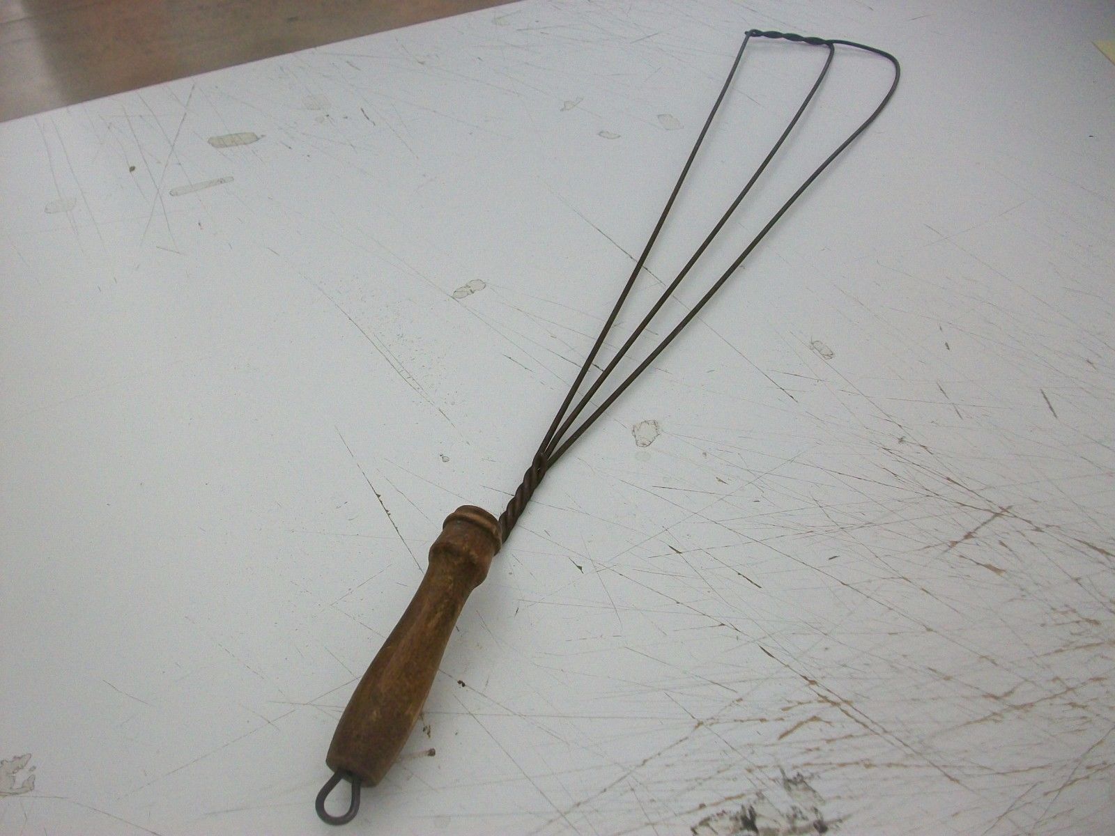 VINTAGE RUG BEATER DUSTER - 31" LONG - WOODEN HANDLE - BROKEN WIRE