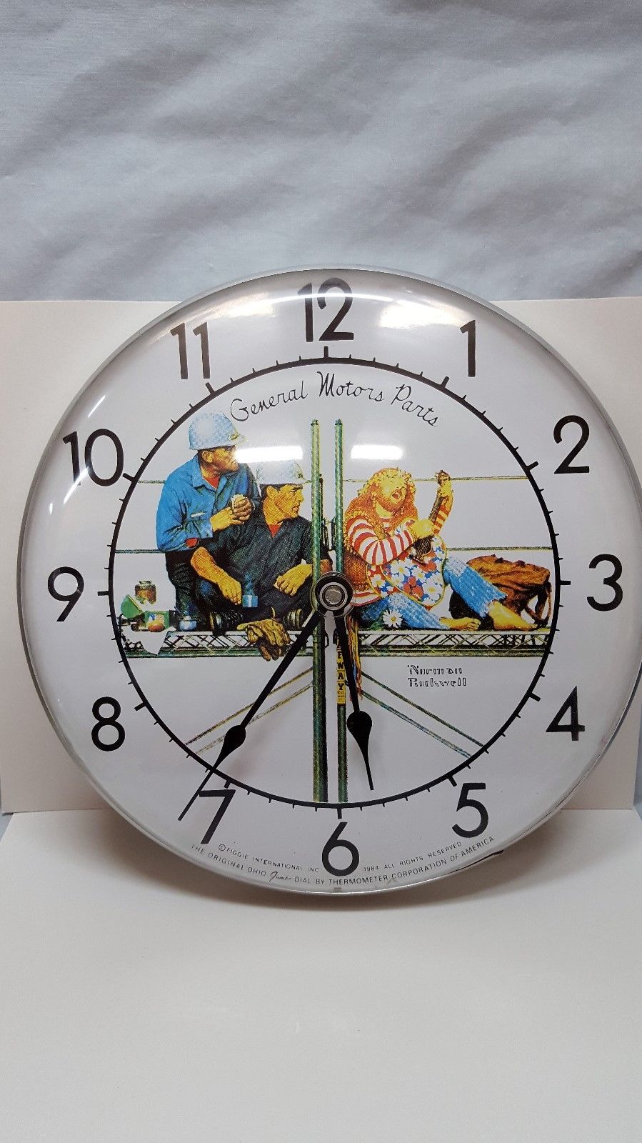 Title (ebay affiliate link): GMC 1984 General Motors Parts Department Norman Rockwell Clock Workers & Hippie