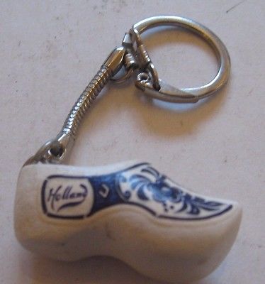 vintage wooden clog shoe keychain souvenir Holland Dutch European trinket small