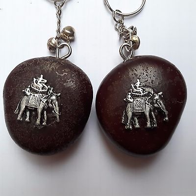 1 Pair New Antique Thai War Elephant Snuffbox Bean Handmade Souvenir Keychain